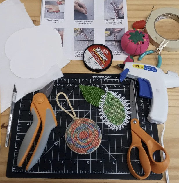 Learn to finish your own needlepoint ornament! Kelly provides the perfect learning environment for beginner finishers to learn circles, squares, and even shaped ornaments! Techniques involve darting, gluing, and sewing making this a very beginner friendly class.