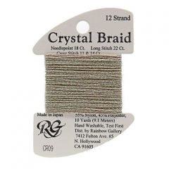 Soft round metallic with a unique icy opalescent finish that shimmers. This braid is a number 12, or tapestry weight. This means there is 12 strands of metallic braided together. It is a very sturdy thread that will not unravel or fray easily.