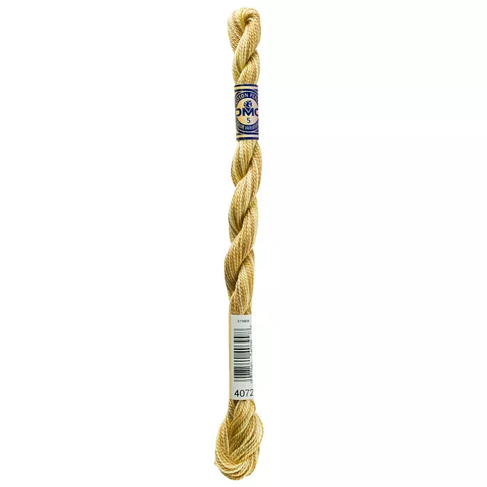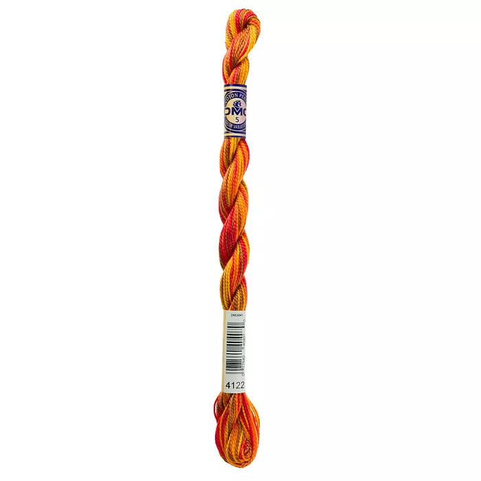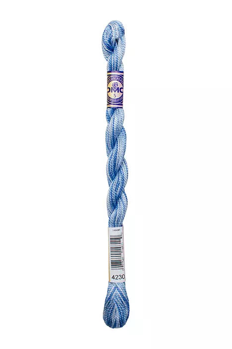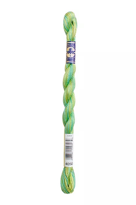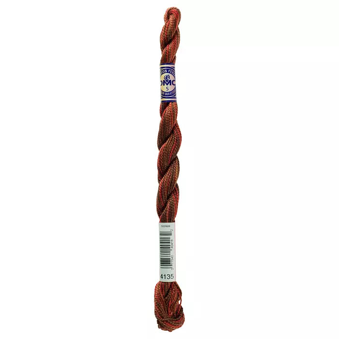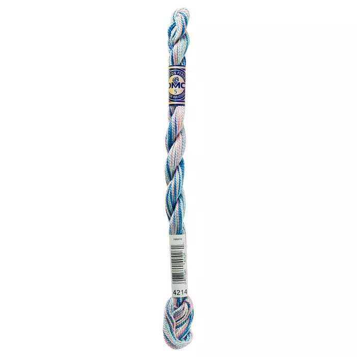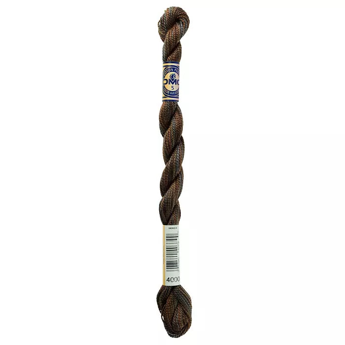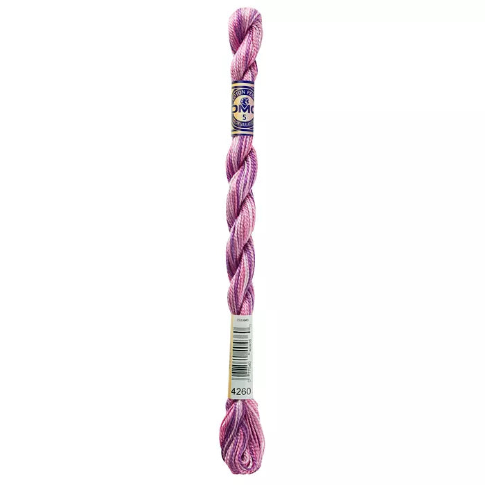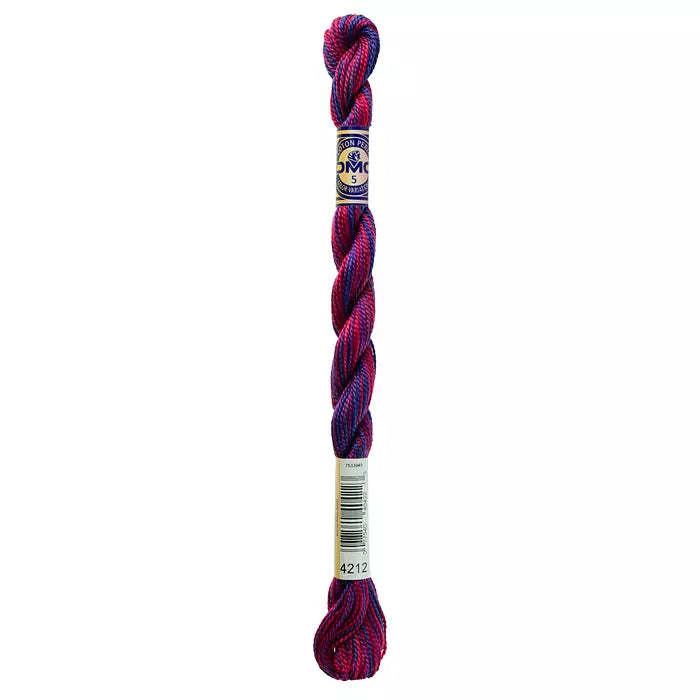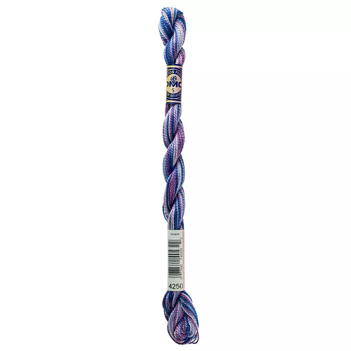 DMC #5 Pearl Cottons with a hand-dyed look. These “overdyed” threads are beautifully designed to create subtle variations in color without having to change threads. Each skein has a blend of soft multi-colors that flow seamlessly into one another along the length of the thread. Each skein is a combination of DMC colors, with 4 inches of every color corresponding to the solid Pearl Cotton colors. The subtle color changes of Pearl Variations reveal themselves every few stitches with no harsh contrasts.This thread has an effect similar to watercolor painting, going from light to dark in a length of five to seven inches.