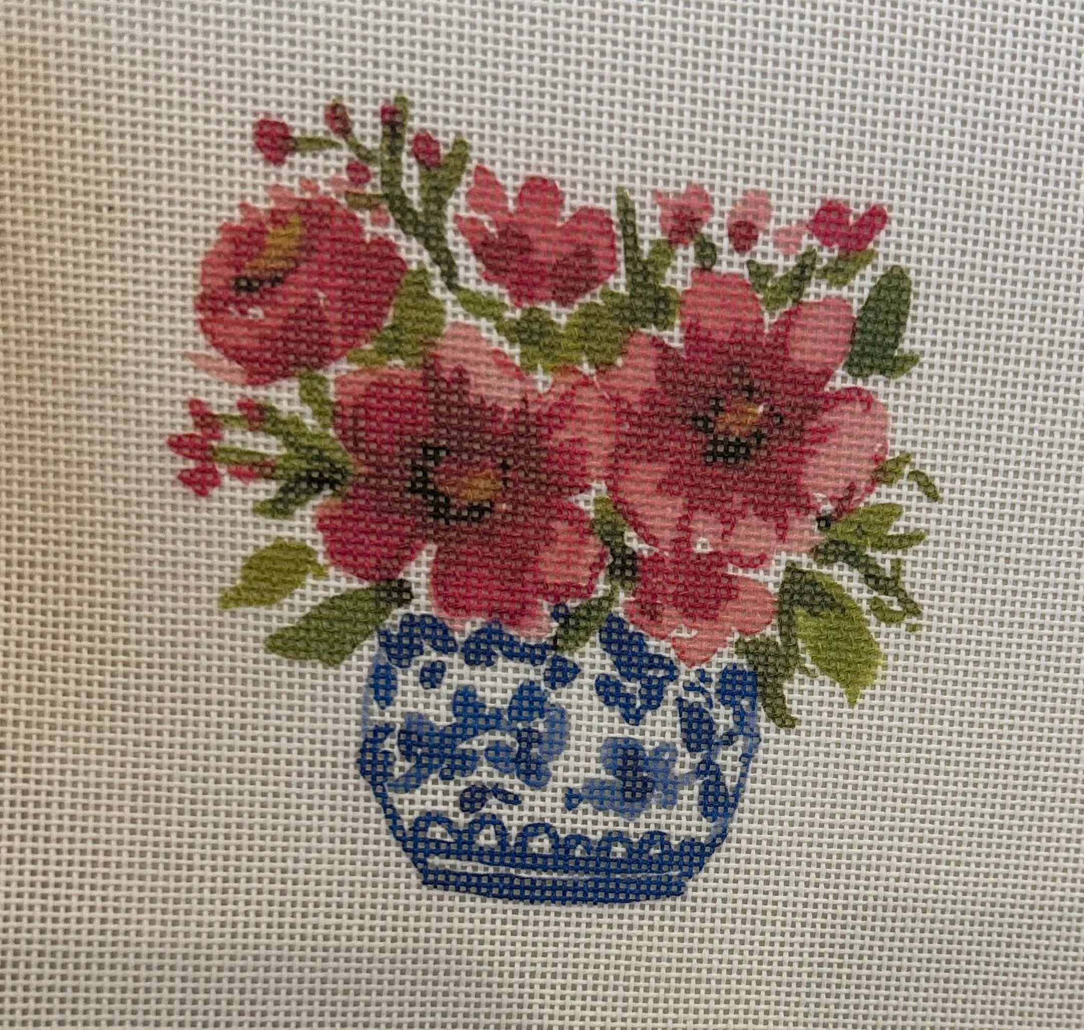 Stitch painted canvas offered by The Collection. This piece can be finished as an ornament, an insert, a coaster, or framed as a picture.