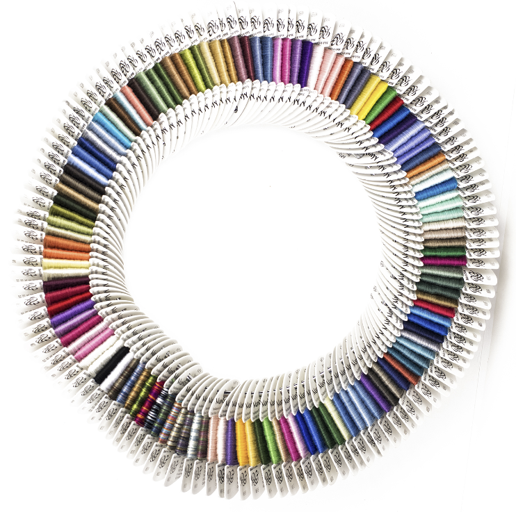 A beautiful and easy to use 6 strand floss. Its semi-matte finish gives contrast to high gloss pearls and cotton floss. A bit softer than stranded cotton floss and has many of the qualities of silk, yet it is strong and easy to use. Does not pill. Several variegated colors